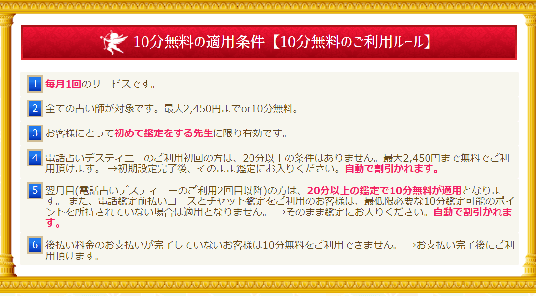| 無料特典 | ①初回鑑定10分無料 ②初回鑑定最優先予約 ③3回の利用で計4,500円分のポイントゲット |